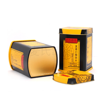 此款直接口服飲片鐵盒印刷精美、耐蝕性能強、硬度大、剛性好,產品圖案商標鮮艷美觀,鐵盒整體引人注目,形成一種優良的銷售包裝。由于包裝為珍貴的靈芝粉等產品,鐵盒具有優異的密封性、防潮防銹性等特征,對產品的保質期限得到更多的延長。