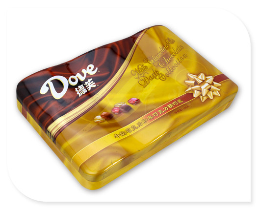 精致牛奶巧克力馬口鐵罐包裝為單面CMYK四色印刷處理,外過水性亮光油,內(nèi)涂食品級(jí)透明油,過油目的不僅能提高鐵罐整體效果,具有強(qiáng)烈的金屬質(zhì)感外,還對(duì)鐵罐印刷面形成一層致密的保護(hù)膜,對(duì)鐵罐刮花、防銹起到一定的防護(hù)作用。除了過光油、金油外,客戶還可選擇過爆炸油、皺紋油、珠光油等.