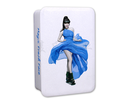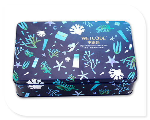 此款長方形面膜鐵盒子,其創意的長方形造型,精美別致的印刷版面,使得在化妝品市場上此款面膜鐵盒鐵盒為三片罐結構,蓋上可做雕刻工藝處理,而做雕刻能夠很好的增加鐵盒的整體觸感,讓人在直接接觸到產品的同時,可提高產品在消費者心中的印象.