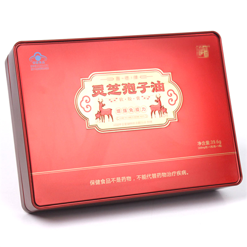 • 長方形靈芝孢子油鐵盒_馬口鐵保健品鐵盒包裝定制工廠