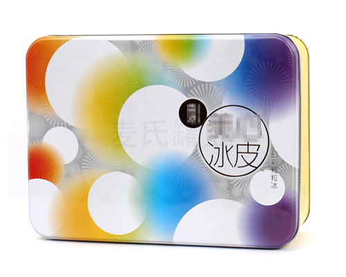 此款冰皮月餅包裝盒,外形為長方形,內卷線蓋,身縮口,扣底設計,鐵盒尺寸為:300*160*55mm,能為您包裝六個裝、八個裝的冰皮月餅產品,這是目前冰皮月餅包裝禮盒的。鐵盒表面為透鐵處理,鐵料原有的原理能清晰的表現出來,涂布具有高亮效果的光油,更能產生一種冰雪的效果,可直接體現出冰皮月餅的特點屬性。