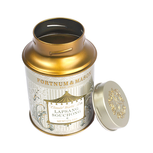 這款馬口鐵紅茶鐵罐包裝為單面CMYK四色印刷處理,外過水性亮光油,內涂金油,過油目的不僅能提高鐵盒整體效果,具有強烈的金屬質感外,還對鐵盒印刷面形成一層致密的保護膜,對鐵罐刮花、防銹起到一定的防護作用。除了過光油、透明油外,客戶還可選擇過皺紋油、珠光油、爆炸油等。