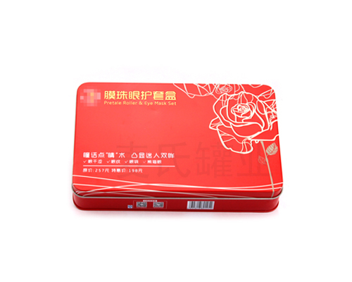 精美保濕眼霜鐵盒,眼膜眼霜套裝鐵盒加工,采用單面四色印刷工藝,外過啞油、內過透明油。屬于化妝品包裝鐵盒,得到化妝品商家的青睞。