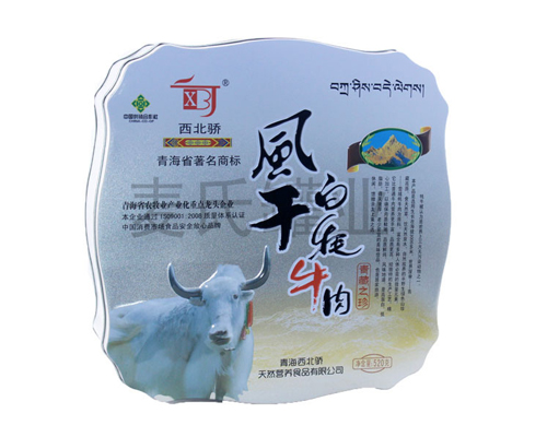 此款青海耗牛肉干鐵盒是一款實(shí)用性很強(qiáng)的金屬包裝制品,鐵盒內(nèi)部可搭配不同材質(zhì)的內(nèi)部托盤配件,比如EVA、PVC制成的吸塑內(nèi)托、海綿、植絨等。在鐵盒外部配套方面,可定制白卡紙、銅版紙等其他紙質(zhì)制成的禮品手提袋等