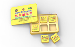 青磚茶鐵盒:特別的包裝閃亮登場,主體色以淡黃色為引導(dǎo)。配上茶葉種植園與苗族少女形象,恰好點明了青磚茶產(chǎn)地的特點......