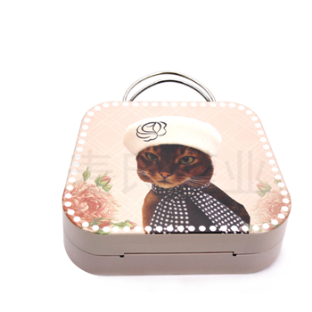 此款手提包包罐加工,合成皮革材料的手提配件,190*150*60mm規(guī)格的盒身緊緊相連,給消費(fèi)者看起來(lái)像一個(gè)行李小盒一樣,精美別致。喵咪的可愛(ài)風(fēng)格設(shè)計(jì),更適合兒童或女生使用。鐵盒印刷為單面四色印刷工藝,外層涂布致密的鐳射鍍膜,讓鐵盒外觀在不同角度呈現(xiàn)不同的視覺(jué)效果。這款鐵盒能包裝各種玩具、手表、食品、禮物等禮品。